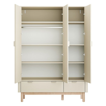 Stripe ir lieliska izvēle bērnu istabai neatkarīgi no bērna vecuma vai dzimuma. Šai elegantajai mēbelei ir raksturīga uzlabota klusās aizvēršanās sistēma, kas garantē labu miegu un netraucētu durvju atvēršanu. Garderobes interjers ir rūpīgi izstrādāts, lai nodrošinātu maksimālu funkcionalitāti. Ir trīs plaukti un drēbju sliede, kas aptver divu durvju platumu, un trīs plaukti, kas aptver vienas durvis. Diemžēl papildu plauktus nav iespējams iegādāties, taču ir dažādi citi veidi, kā sakārtot telpu garderobes iekšienē, kas ļauj to pielāgot savām konkrētajām vajadzībām un vēlmēm. Vēl viena šī drēbju skapja priekšrocība ir tā elastība. Iespēja uzstādīt kreiso vai labo variantu (ar šaurāko skapja daļu kreisajā vai labajā pusē) ļauj mēbeles perfekti pieskaņot telpas iekārtojumam, kas padara to par universālu izvēli.